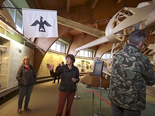 Aber es half nichts. Um 12:00 Uhr erwartete man uns im Deutschen Segelflugmuseum. Eine nette Dame mit fundiertem Fachwissen, brachte uns die ausgestellten Exponate näher. Die 90-minütige Führung verlief äußerst kurzweilig und informativ. Zum krönenden Abschluss hatten wir die außergewöhnliche Gelegenheit, in die Restaurationswerkstatt zu schnuppern. Und das im wahrsten Sinne des Wortes. Die „Wohlgerüche“, welche uns dort umgaben, weckten heftige Erinnerungen an meine Modellbau-Zeit. Die Duft-Mischung aus Holzleim, Polyester und weiteren Materialien ist unvergleichlich. Man war gerade dabei das Segelflugzeug „DFS-Meise Olympia“ zu restaurieren. Es sollte 1940 bei den Olympischen Spielen in Helsinki zum Einsatz kommen. Aber – wie wir heute wissen – hatte die Welt damals ganz andere Probleme. Die Einblicke in die Restaurationswerkstatt waren jedenfalls ein geradezu sinnliches Erlebnis.