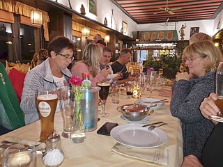 Derart gestärkt, waren wir gut auf das Abschieds-Abendessen im Hotel vorbereitet. Diesmal war im rustikalen Kellergewölbe des Haupthauses für uns eingedeckt worden. Im Verlauf des späteren Abends wurde uns wieder einmal klar: Auch ein sogenanntes langes 4-Tages-Event ist eigentlich viel zu kurz, denn am nächsten Morgen stand schon wieder die individuelle Rückreise auf dem Programm.