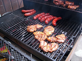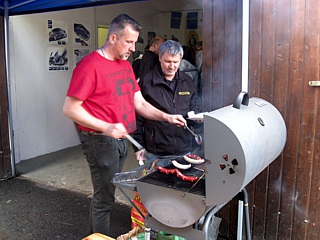 Auf mehrfaches Drängen der mittlerweile wieder hungrigen Clubmitglieder wurde vom BBQ-Beauftragten gegen 17:00 Uhr der Holzkohlegrill anfeuert. Wie in den Vorjahren auch wurden von ihm gekonnt Bratwürste und Steaks zubereitet.