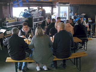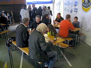 Aufgrund des bereits angesprochenen mäßigen Wetters wurde eher in den Räumlichkeiten des Clubheims als unter freiem Himmel gefeiert. Dies tat aber den Benzingesprächen und dem Schwelgen in Erinnerungen vergangener Clubgeschichte keinen Abbruch und der Nachmittag verging wie im Flug.