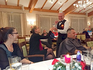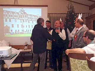 Natürlich fanden die Feierlichkeiten wieder in Oberaula, in unserem Stammhotel statt. Der festlich geschmückte Raum war mit langen Festtafeln bestuhlt. Ellen und Hugo Schneider hatten liebevoll gestaltete Platzkärtchen vorbereitet und wie immer, fand auch jedes Mitglied ein kleines Geschenk an seinem Sitzplatz vor.