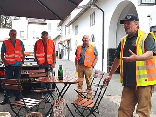 Auf der großen Terrasse mit Blick ins Tal genossen wir unseren ersten Café und man versprach uns, dass die Fahrzeuge nicht abgeschleppt würden. Mittlerweile gesellte sich auch der 3. Vorsitzende hinzu und wir machten Pläne für den verbleibenden Nachmittag, denn es galt einige Programmpunkte des Events zu aktualisieren. Man muss eben flexibel sein in der heutigen Zeit.
