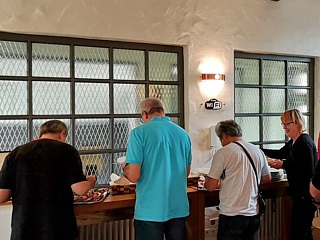 Für den verbleibenden Nachmittag war ursprünglich ein Besuch des ESA-Satellitenkontrollzentrums in Darmstadt vorgesehen. Aufgrund der Corona-Situation war dies leider nicht möglich. Nach kurzem Brainstorming und einem Anruf stand die Entscheidung fest und wir steuerten die Kuralpe Kreuzhof an. Den meisten von uns war diese Destination noch in guter Erinnerung, denn während unseres Tagesausflugs im Juni, besuchten wir das Lokal schonmal. Im malerischen (Bier)-Garten genossen wir Café und Kuchen.