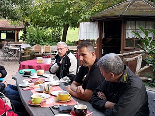 Die Organisatoren meinten es gut mit uns und entdeckten nach intensiver Recherche im World-Wide-Web das Cafe Bauer in Grasellenbach. Das Lokal lockte mit Riesenwindbeuteln. Da konnten unsere Leckermäuler nicht widerstehen. Zu dumm nur, dass die Gaststätte „in the middle of nowhere“ angesiedelt ist und nur über teilweise unbefestigte Waldwege zu erreichen war.