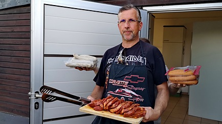 Später befeuerte unser Grillmeister, Kai-Uwe Abel, den Bratrost, um die hungrigen Mäuler mit verschiedenen Würstchen und Steaks zu versorgen. Diverse Beilagen und selbstgemachte Salate wurden wiederum von Clubmitgliedern spendiert.