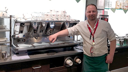 Die Location mag als Treffpunkt für ein Auftakt-Event des LCD auf den ersten Blick ungewöhnlich erscheinen. Es gab aber gute Gründe für diese Wahl. Ganz davon abgesehen, dass der Besitzer der Raststätte ein Lotus-Club-Mitglied ist, gab es weitere Kriterien für diese Entscheidung. Die Küche ist ausgezeichnet und bietet eine große Auswahl. So konnten die Einen ihr spätes Frühstück genießen und Andere gleichzeitig ein frühes Mittagessen einnehmen. Das Personal ist freundlich und professionell. Der Barkeeper, Krystian Czerwinski, zauberte für uns an seinem Lieblings-Arbeitsgerät - der Espressomaschine - leckere Café-Spezialitäten.