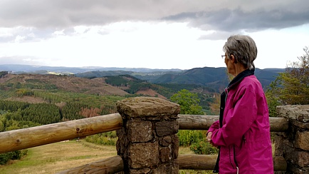 Als wir unseren nächsten Aufenthaltspunkt erreichten, schien schon wieder die Sonne, obwohl drohend schwarze Wolken allgegenwärtig waren. Der Aussichtsturm Hohe Bracht ist ein beliebter Anlaufpunkt für Ausflügler. Aufgrund des wechselhaften Wetters hatten wir das Areal fast für uns alleine. Es gab durchaus die Möglichkeit dort einzukehren, aber das Mittagessen war noch nicht verdaut. Also beschlossen wir, einfach die herrliche Aussicht zu genießen und zu einem späteren Zeitpunkt Café zu trinken.