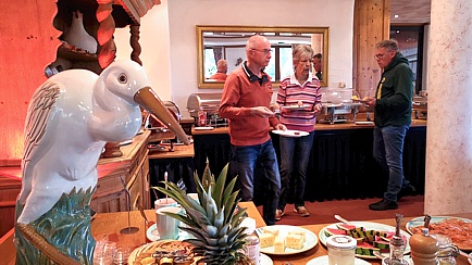 Spätestens zum Begrüßungscocktail und zum Abendessen sind in der Regel alle Teilnehmer eingetroffen. Es gibt leider auch immer mal wieder bedauernswerte Einzelschicksale, die sich nicht rechtzeitig von der Arbeit losreisen können oder im Stau stehen. So erging es diesmal Hartmut Lindloff. Aber auch er musste nicht hungrig zu Bett gehen. Und nach der einen oder anderen „Kaltschale“ in unserer „Lümmelecke“, war es Zeit sich in die Gemächer zurückzuziehen, denn am folgenden Tag wartete ein volles Programm auf uns.