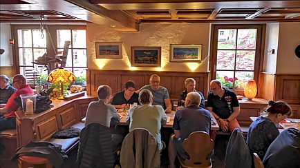 Nach kurzer Stärkung fuhren wir gemütlich gen Süden über phantastische Schwarzwaldsträßchen zum Hotel Mühle. Nach kurzer Ehrenrunde durch Gersbach erreichten wir recht zeitig das Hotel und wurden von Moni, Uli und dem Hotelpersonal freundlichst empfangen.