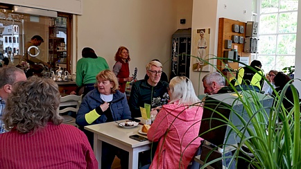 Dort angekommen, stellten wir unsere Fahrzeuge wieder auf dem für uns reservierten Parkplatz direkt hinter dem Bahnhof mit Blick auf die vorbeifließende Lahn ab und ließen uns im Café verwöhnen.