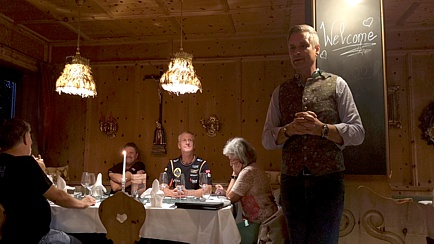 Zunächst genossen die Neuankömmlinge am frühen Nachmittag den Begrüßungs-Drink und freuten sich auf der sonnendurchfluteten Terrasse des Hotels über Café und Kuchen. Später begrüßte der Kurdirektor und Event-Organisator, Thomas Jahn, die Teilnehmer im Restaurant des Schmelmer Hofs und umriss die Historie des Hotels. Noch bevor das Abendessen in der Zirbel-Stube zelebriert wurde, besprachen wir das geplante Programm für die kommenden Tage. Unnötig zu erwähnen, dass der Abend an der Hotel-Bar seinen Ausklang fand.