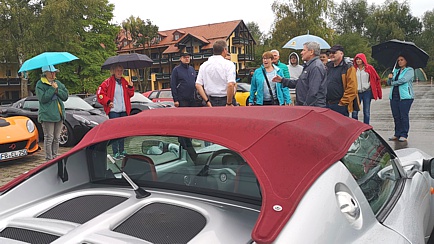 Samstag, 23. September: Im Roadbook war zu lesen: „Nach einem ausgiebigen Frühstück lassen wir es heute etwas entspannter angehen.“ – Das Wetter war kaum besser, als am Vortag. Dennoch genossen wir insgesamt 180 Kilometer auf einer der schönsten Strecken im Umkreis. Unter anderem legten wir am Sylvensteinspeicher einen Zwischenstopp ein. Wir reihten unsere Fahrzeuge auf der Staumauer auf. Petrus hatte ein Einsehen und stoppte die Wasserzufuhr von oben, zumindest solange, bis wir wieder in die Autos einstiegen.