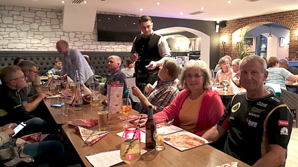 Nach dem Dinner hatten wir die Wahl zwischen der Landstraße und der parallel verlaufenden Autobahn, um zum Hotel zurück zu gelangen. Die Nacht war zwischenzeitlich hereingebrochen und es regnete wieder Bindfäden. Daher entschieden sich viele für die Autobahn. Durch die Gischt der vorausfahrenden Fahrzeuge wurde die Fahrt großteils unter Blindflugbedingungen absolviert. Wieder im Hotel angekommen, nutzten wir die Gelegenheit, uns an der Bar unter Zuführung einiger Kaltschalen zu regenerieren und den neuen Mitgliedern von den guten, alten Zeiten zu berichten.
