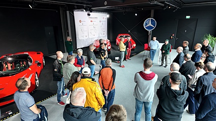 In der Ferrari-Sonderausstellung, welche sich in der oberen Etage befindet, wurden wir von Tobias Reichle, einem der beiden Geschäftsführer der Loh-Collection, erwartet. Siegfried Herrmann sprach ein paar einführende Worte, dann erfuhren wir von Herrn Reichle viele Details über das Museum und dessen Entstehung. Zwischenfragen wurden gerne und ausführlich beantwortet. Zum krönenden Abschluss gewährte man uns noch einen Blick in die hauseigene Werkstatt. Dort werden alle Exponate gewartet, denn jedes ausgestellte Fahrzeug ist fahrtüchtig und wird auch regelmäßig artgerecht bewegt.