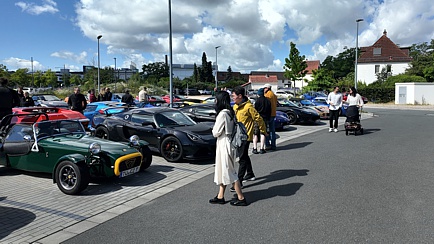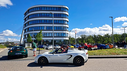 Nach einem ausgiebigen Frühstück im Holiday Inn, waren es nur wenige Minuten Fahrzeit, um das „LOTUS Tech Innovation Centre“ zu erreichen. Parkplätze waren in ausreichender Zahl für uns reserviert. Dort trafen dann auch diejenigen ein, die direkt von zuhause gestartet waren. Das Wetter war wesentlich besser als vorhergesagt. Ein recht starker Wind vertrieb glücklicherweise die Regenwolken.