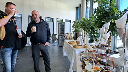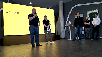 Im Foyer des imposanten Gebäudes wurden die Gäste freundlich begrüßt. Linkerhand standen die aktuellen Modelle des Herstellers. Rechts lud eine Café-Ecke zum Verweilen ein. Mittig an der Rezeption bekam jeder Teilnehmer ein T-Shirt ausgehändigt. Dort konnte man sich auch für eine Probefahrt registrieren lassen und evtl. offene Fragen klären.