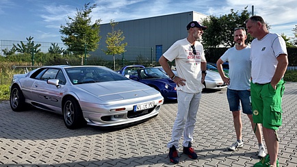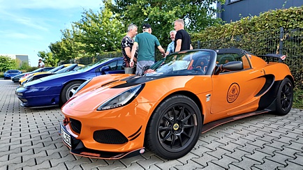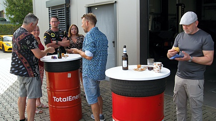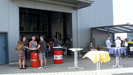 Die auf dem Firmengelände geparkten Lotus-Fahrzeuge boten eine schöne Kulisse, denn gefeiert wurde nicht nur in den Räumlichkeiten, sondern auch im Freien, wo Stehtische zum Verweilen einluden.