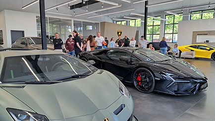 Zunächst sollte aber in den Räumen der Dörr-Group die Begrüßung und eine anschließende Führung stattfinden. Nun verfügt aber die Dörr-Group auf dem weitläufigen Gelände der Klassikstadt über diverse Räumlichkeiten. Also stellte sich die Frage, wo genau die Begrüßung stattfinden sollte. Alsbald stellte sich heraus, dass man uns bei Lamborghini auf der gegenüberliegenden Straßenseite erwartete.