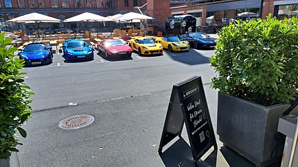 Dort gab es in modern, gediegener Atmosphäre einen feinen Café. Die Benzingespräche mit den Mitarbeitern wurden bisweilen durch diverse Soundtests der dort ausgestellten Lamborghini-Modelle unterbrochen.