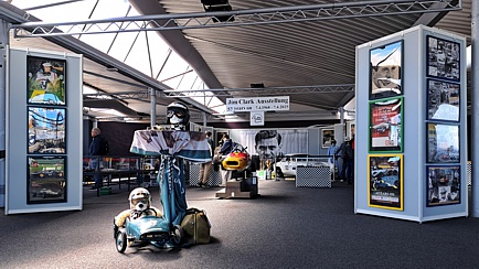 Die Jim-Clark-Sonderausstellung im Kongress-Pavillon ist mittlerweile eine feste Größe. Jürg Mallepell und seine Frau, Marie Theres, schaffen es immer wieder, mit neuen Akzenten und Liebe zum Detail das Publikum in Bann zu ziehen. Wie in den vergangenen Jahren, stellte unser Clubmitglied, Wolfgang Henseler, für die Ausstellung wieder eines seiner Fahrzeuge zur Verfügung. Diesmal diente sein Lotus Elite S1 als Blickfang der absolut sehenswerten Ausstellung.