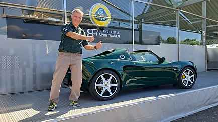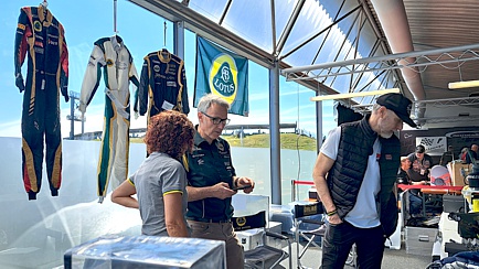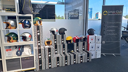 BF-Sportwagen war sowohl auf einer großen Fläche im Kongress-Pavillon, als auch im Außenbereich vertreten. Drinnen gab es Lotus-Merchandising- Artikel, -Kleidung und -Taschen, Modellautos und vieles mehr. Darüber hinaus wurden wieder BF-Spezialitäten angeboten, die es so nur bei Bernd Feistle gibt. Die aus Lotus-Schalensitzen gefertigten Bürostühle sind schon legendär, um nur ein Beispiel zu nennen. Die Lotus-gebrandeten Sturzhelme durften nicht fehlen. Als Clubmitglied war es für Bernd eine Selbstverständlichkeit, dass wir dort unsere Lotus-Club-Deutschland-Banner an prominenter Stelle werbewirksam aufstellen. Dieses Entgegenkommen und weitere Unterstützung halte ich nicht für selbstverständlich und ist hoch anzurechnen. BF-Sportwagen war also ein beliebter Treffpunkt für Clubmitglieder und weitere Lotus-Enthusiasten.
