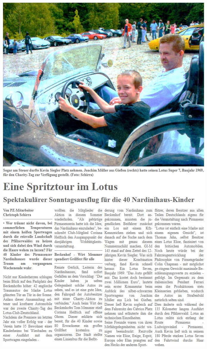 Nach dem überwältigenden Erfolg im vergangenen Jahr hat sich der Lotus Club Deutschland auch für das Jahr 2004 vorgenommen, wieder viele Kinderherzen höher schlagen zu lassen, und erneut einen Kinder - Charity - Tag organisiert.