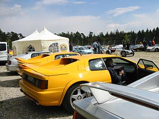 Insgesamt 13 LOTUS-CLUBS aus ganz Europa folgten der Einladung und fanden sich auf dem vom Veranstalter zur Verfügung gestellten LOTUS-Parkplatz ein. Nach einer offiziellen Zählung konnten die Zuschauer am Sonntag neben den sehr interessanten Rennen über 200 LOTUS-Fahrzeuge bewundern, die alle auf eigener Achse angereist waren. Dieses Detail ist erwähnenswert, da nicht nur aktuelle Modelle den Weg nach Hockenheim fanden, sondern auch Young- und Oldtimer. Galt es doch am Samstagabend einen Eintrag ins Guinness-Buch der Rekorde zu erlangen. Angestrebt wurde das größte rollende Automobilmuseum mit 1000 Oldtimern. Zugelassen waren Fahrzeuge aller Hersteller, die ein Mindestalter von 30 Jahren aufweisen mussten. Leider wurde dieses Ziel zum zweiten Mal verfehlt.