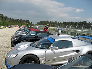 Gemeinsam mit den Lotus Clubs aus mehreren Europäischen Ländern bekamen wir ein eigenes Areal direkt an der Rennstrecke zur Verfügung gestellt. Neben den vielen historischen und aktuellen Lotus Fahrzeugen konnte man an der Parabolika den neu aufgebauten Club-Bus unserer Freunde vom Lotus-Club-Österreich bewundern.