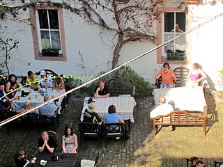 Im Anschluß ließ man dann den Abend in gemütlicher Runde zuerst wegen der lauen Temperaturen im Schloßhof und zu fortgeschrittener Stunde an der wohlsortierten Bar ausklingen.