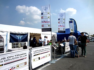 Nach der Fahrzeugregistrierung fuhr man zur Mercedestribüne. Erfreulicherweise ist dort mittlerweile im Gegensatz zu früher das ganze Areal großflächig asphaltiert. Dort parkten die Markenclubs. Freundliche Marshalls sorgten dafür, dass die Fahrzeuge in Gruppen geordnet aufgereiht wurden. Für Lotus war der größte Bereich reserviert. Inmitten dieser vielen Exoten aus Großbritannien errichtete unser 3. Vorsitzender, Kai-Uwe Abel, mit einigen fleißigen Helfern, einen kleinen Pavillon. Die LCD-Beachflag war weithin sichtbar, so dass der mit Club-Accessoires ausgestatte Pavillon von den Clubmitgliedern gerne als Treffpunkt genutzt wurde. Am Club interessierte Nichtmitglieder konnten sich dort unverbindlich informieren und einen ersten Eindruck vom Lotus Club Deutschland gewinnen.
