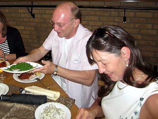Nach den reichlich gesammelten Eindrücken beim Frikadelli-Team war noch etwas Zeit sich im Hotel frisch zu machen, bevor die Western-Party im sagenhaft schönen Blockhaus von Frikadelli begann. Zum Glück hat Sabine neben dem Rennfahren eine weitere Passion - das Hubschrauberfliegen. Mit dem teameigenen Hubschrauber kamen sie und Klaus Abbelen rechtzeitig von Le Mans zurück, um uns fürstlich zu bekochen. Klaus war der Grillmeister und bereitete Steaks und andere Leckereien zu, von denen ich heute noch schwärme. Sabine sorgte für die nicht weniger schmackhaften Beilagen. Beide schenkten uns einen unvergesslichen Abend. Und eines ist klar: Dies wird nicht unser letzter Besuch in Eifel gewesen sein.