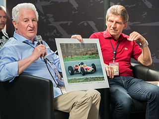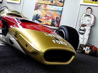 Direkt nebenan, dort wo in den vergangenen Jahren eine große Slotcar-Rennbahn ihren Platz hatte, gab es diesmal eine Bühne. Dort fanden am Sonntag u. a. packende Interviews mit Zeitzeugen aus den Sechzigern statt, die Jim Clark persönlich kannten und den tragischen Unfall aus ihrer Sicht schilderten. Nicht nur ich bekam eine Gänsehaut, als ich den Schilderungen lauschte.