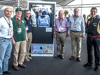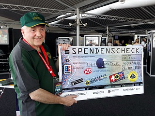 Am Sonntagnachmittag überreichte Siegfried Hermann im Glaspavillon einen Spendenscheck in Höhe von 5.000,00 EUR an Vertreter des Jim-Clark-Trust. Das Geld wurde von BF-Motorsport, vom Historic-Register-Germany, dem Swiss-Lotus-Team und dem Lotus-Club-Deutschland gespendet. Es ist für die Modernisierung und Erweiterung des Jim-Clark-Museums in Schottland vorgesehen.