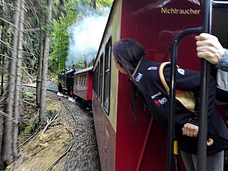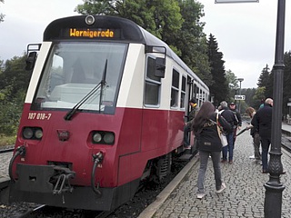 Freitag, 28. September: Bei leichtem Regen und herbstlichen Temperaturen nahmen wir nach dem reichhaltigen Frühstück die ersten Kilometer nach Drei Annen Hohne in Angriff. Am dortigen Bahnhof der Harzer Schmalspurbahn angelangt, kamen die Eisenbahn-Romantiker voll und ganz auf ihre Kosten. Mit einem historischen Dieseltriebwagen setzten wir unsere Reise nach Wernigerode fort.