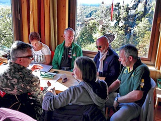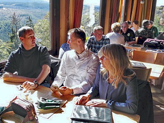 Donnerstag, 27. September: Getreu dem Motto „der Weg ist das Ziel“ trafen sich einige Teilnehmer bereits während der Anreise, um schon vor dem offiziellen Beginn des 4-tägigen Events möglichst viel Spaß zu haben. Im konkreten Fall waren die Protagonisten Ralf Bunn, Werner Kiehne, Günther Losacker und meine Wenigkeit nebst Beifahrerin Emmi. Treffpunkt war die Raststätte Reinhardshain. Von dort aus hatten wir noch etwa 200 Kilometer Strecke vor uns, welche unter Vermeidung der Autobahn auf schönen Sträßchen absolviert wurden. Natürlich nahmen wir uns auch die Zeit für eine Café-Pause.