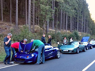 Ein Spaziergang durch das Stadtzentrum und vorbei am Spielcasino, welches der LCD Anno 2001 im Rahmen eines Events bereits besuchte, führte uns wieder zu den Fahrzeugen. Nun hatten wir noch wunderbare 95 Kilometer Straße vor uns und Günther Losacker bescherte im Führungsfahrzeug den ihm folgenden Teilnehmern – nicht ganz freiwillig – noch ein besonderes Highlight. Sein Lotus Elise MK1 verweigerte kurzerhand die Leistungsabgabe, obwohl das Auto am Vortag eine neue Starterbatterie spendiert bekam. Zum Glück hatte sich der Lotus eine unkritische Stelle ausgesucht, sodass viele fleißige Helfer – angeführt von Kai-Uwe Abel – das Problem an Ort und Stelle beheben konnten.