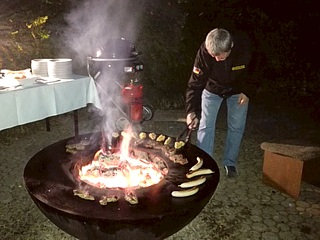 Das letzte Abendessen des Events fand im Hotel statt. Die Vorstandschaft des Clubs grillte eigenhändig am Feuerring auf der Hotelterrasse köstliche Wurst- und Fleischspezialitäten für die hungrigen Teilnehmer. Gegessen wurde aufgrund der herbstlichen Temperaturen im Restaurant, wo natürlich ein Buffet mit allerlei Beilagen vorbereitet war.