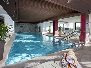 Einige Clubmitglieder unternahmen noch den Versuch eines Spazierganges im nahegelegenen, verschneiten Wald in der Hoffnung hier etwas windgeschützer zu sein. Diese Hoffnung wurde aber regelrecht vom Winde verweht und der Spaziergang ging dann doch recht schnell seinem Ende entgegen. So wurde der Wellnessbereich des Hotels unweigerlich zum Dreh- und Angelpunkt. Hier gab es alles was das Herz begehrte, von Schwimmbad und Whirlpool bis hin zu Sauna, Dampfbad und einem Fitnessraum. Durch große Panoramafenster getrennt von den eisigen Temperaturen hatte man im Ruheraum bei wohligen 30°C einen wunderschönen Blick ins Tal und die schneebedeckten Hügel.