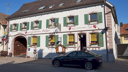 Nach ausgiebiger Stärkung mit lokalen Köstlichkeiten machten wir uns dann auf den Weg, wieder das Elsass unter die Räder zu nehmen. Unter der Devise „heute mal ohne Navi einfach hinterher“ wurde mir schnell bewusst, dass das keine gute Idee war. Nach wenigen Kilometern Abbiegepunkt verpasst und nach einigen Kilometern Falschfahrt umkehren und wieder „Witterung“ aufnehmen. Ohne Orientierungspunkte allerdings ein hoffnungsloses Unterfangen. Nach zweistündiger, wunderschöner Alleinfahrt dann aber wieder zur Truppe gefunden, fuhren wir die letzten Kilometer gemeinsam zum Hotel.