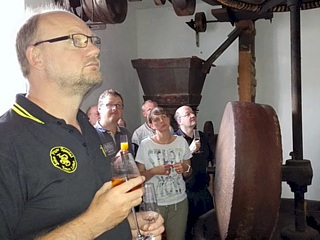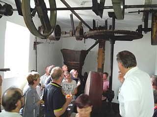 Einchecken, kurz frisch machen und schon begann die Begrüßung und eine kurze und hochinteressante persönliche Führung des Hotelchefs durch die gegenüberliegende Mühle. Mit einigen bunten Metaphern und viel Humor genossen wir einige sehr kurzweilige Einblicke in die früheren Arbeitsweisen der Mühlenarbeiter.