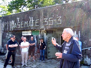 Hier empfing uns ein in der Tat etwas betagter, aber noch sehr wortgewandter Herr, um uns die Geschichte des Bauwerks näher zu bringen. Viele Orte hatten im 2. Weltkrieg ihre ganz eigenen Geschichten. Und unser französischer „Führer“ erzählte uns einige hochinteressante Details über diesen kleinen Bunker.