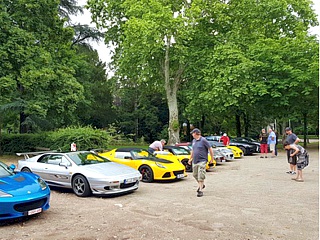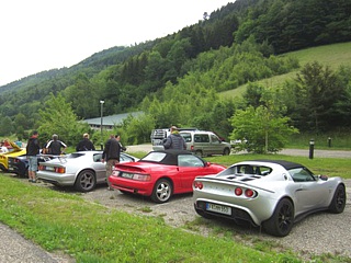 Die Tour, inclusive Mittagspause, organisierte natürlich Schwarzwaldkenner Uwe Zerrweck. Bei besagter Mittagspause in Dornstetten gesellte sich noch Hartmut Lindloff zu uns und unsere Anreisetruppe war ab hier komplett. Mit nunmehr sechs Lotus ging es zeitweise gemächlich und mal recht zügig über zumeist kurvige Sträßchen Richtung Süden. Nach einer weiteren (Kaffee-) Pause erreichten wir gut gelaunt das Hotel Adler in Endingen.