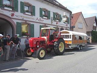 Nach individueller Inspektion des übrigen Geländes setzten wir unsere Fahrt fort. In Ribeauvillé parkten wir unsere Fahrzeuge exklusiv direkt in einem an die Altstadt angrenzenden Park. Nach einigen Metern zu Fuß empfing uns eine charmante Dame, welche uns dieses kleine Städtchen in amüsanter Weise näherbrachte. Nach individuellem Mittagessen machten wir uns dann ebenso individuell auf die Rückfahrt zum Hotel.