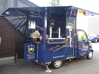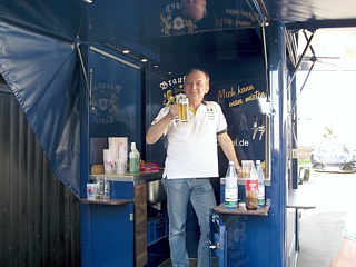 Auch ein weiteres Highlight hatte dieses Jahr Premiere. Die allseits bekannte Getränketheke im Clubheim wurde Geschichte. Stattdessen wurde ein Getränkewagen mit Kühlgelegenheit und Zapfanlage organisiert. An dieses Schmuckstück hatte ganz besonders unser Ehrenvorsitzender sein Herz verloren. Es wurden auch seitens der Clubmitglieder Stimmen laut doch so etwas für den Club anzuschaffen, aber natürlich bitte in British Racing Green und mit dem Lotus-Club Logo.