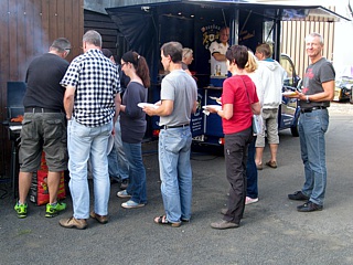 Zu den Steaks und Bratwürsten gab es verschiedene Salate und Baguettebrot. Der Getränkewagen hatte außer dem Bier auch noch verschiedene nichtalkoholische Getränke mit an Bord. Somit war für jeden etwas dabei und man verbrachte viele schöne Stunden im Kreise der Clubmitglieder und denen die es vielleicht noch werden wollen.